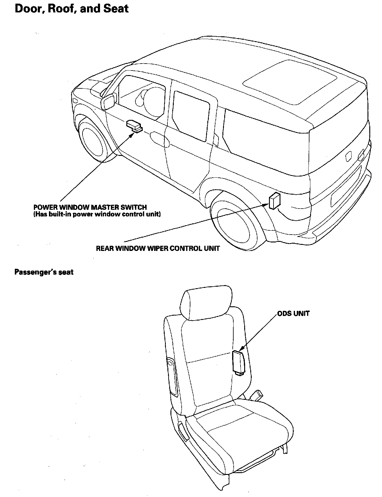 Relay And Control Unit Locations Door, Roof, And Seat: