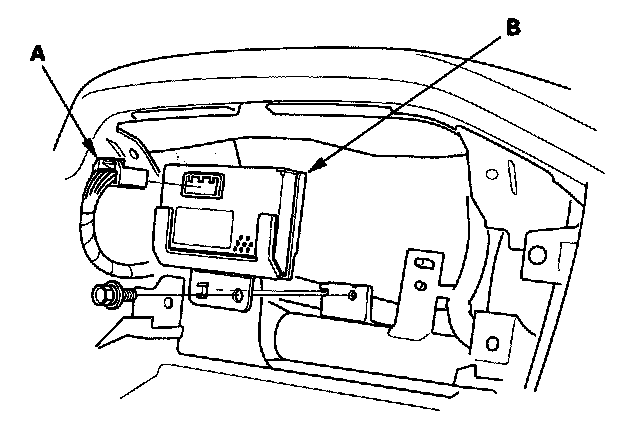 2. Disconnect the connector (A), then remove the bolts and the active noise control unit (B).