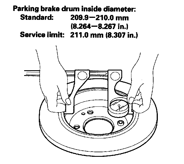 9. If the inside diameter of the parking brake drum is more than service limit, replace the brake disc/drum.