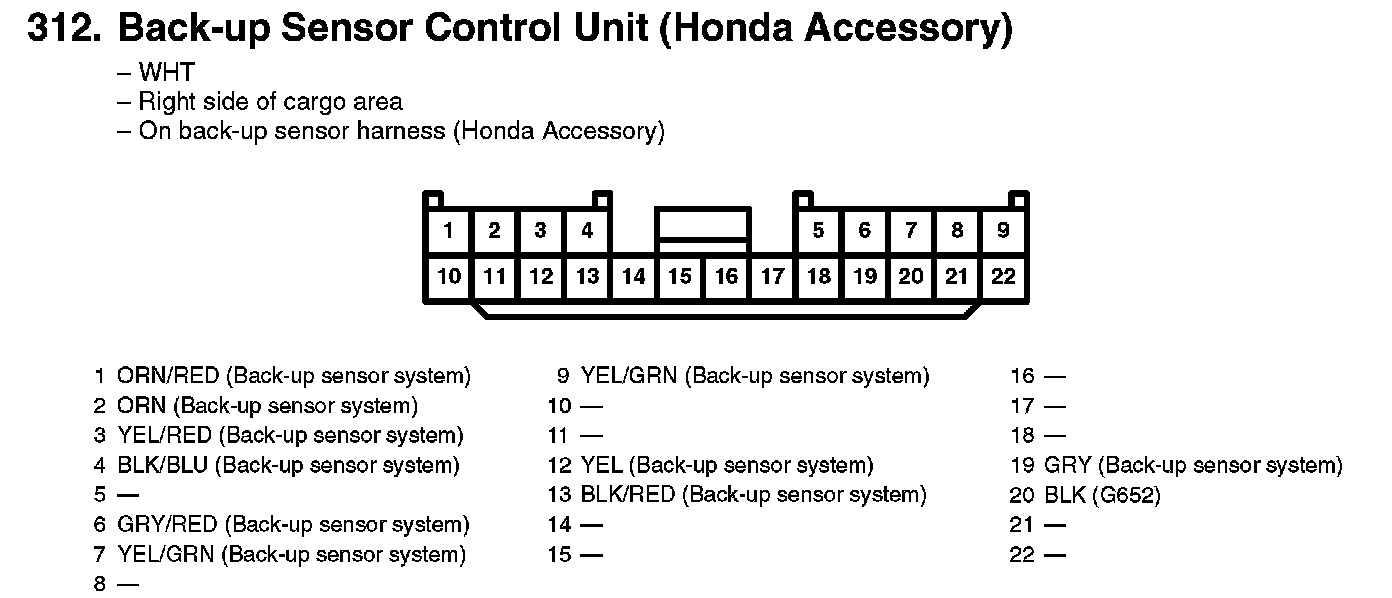 312. Back-up Sensor Control Unit (Honda Accessory):