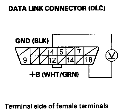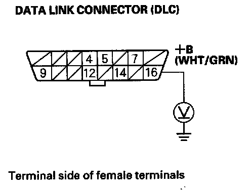 2. Measure voltage between DLC terminals No. 4 and No. 16.