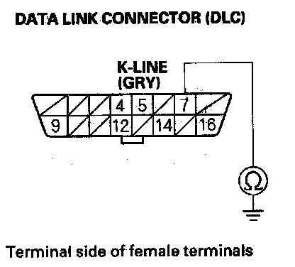 13. Check for continuity between DLC terminal No. 7 and body ground.