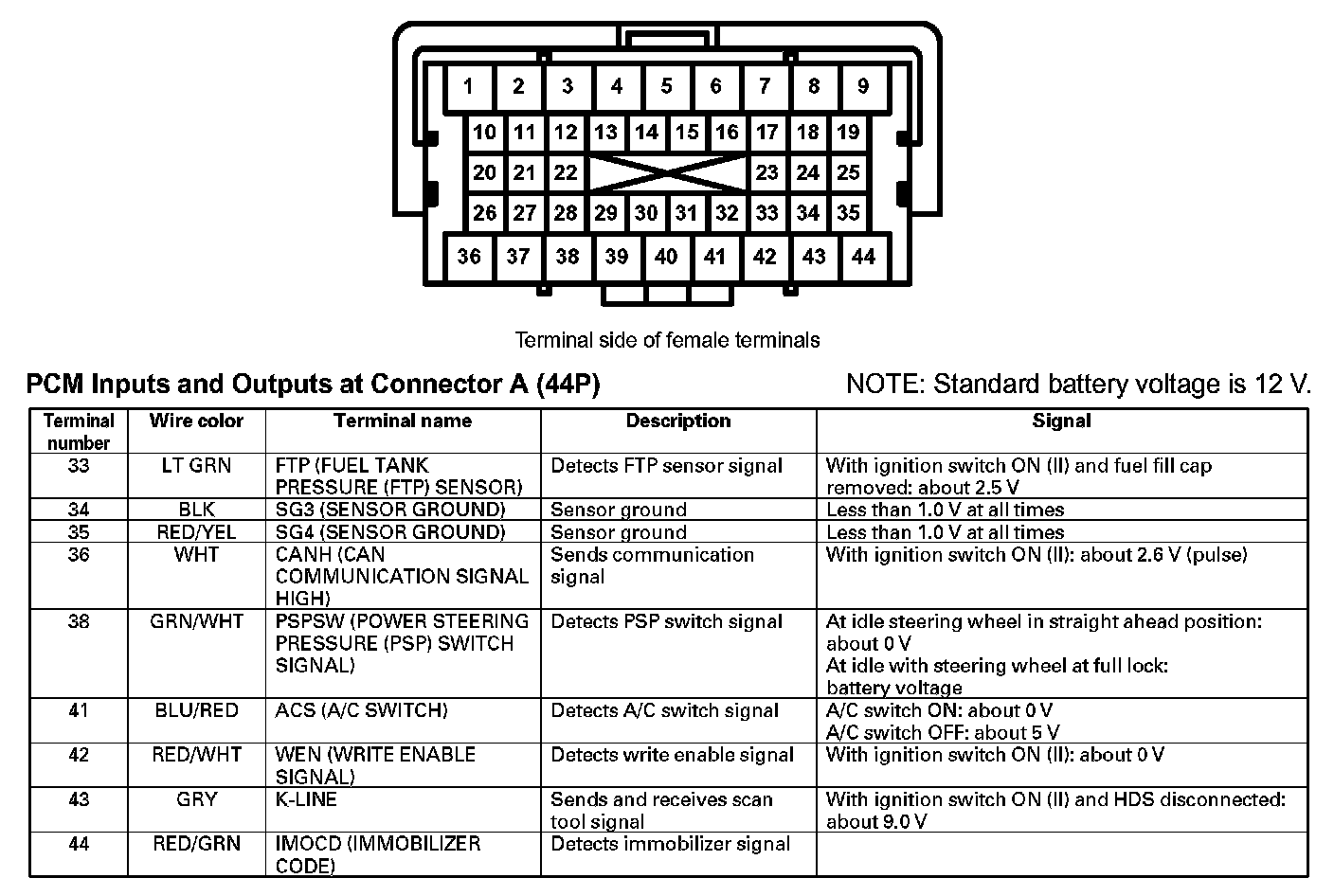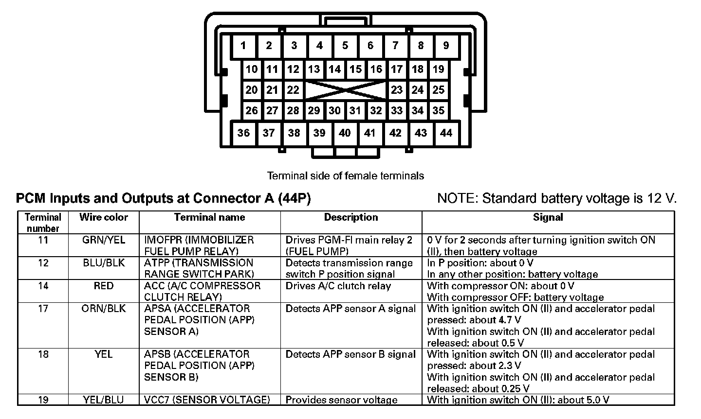 PCM Inputs And Outputs At Connector A (44P) (Part 3):