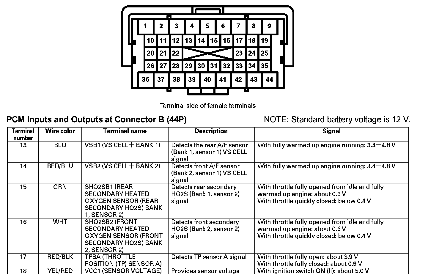 PCM Inputs And Outputs At Connector B (44P) (Part 3):