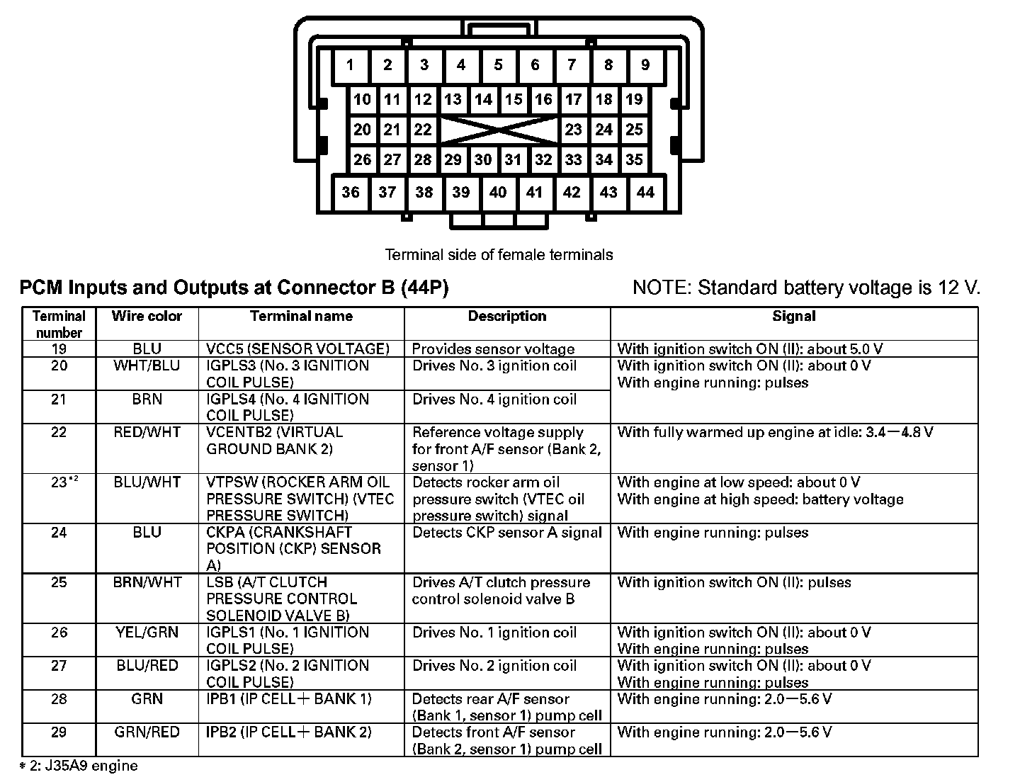 PCM Inputs And Outputs At Connector B (44P) (Part 2):