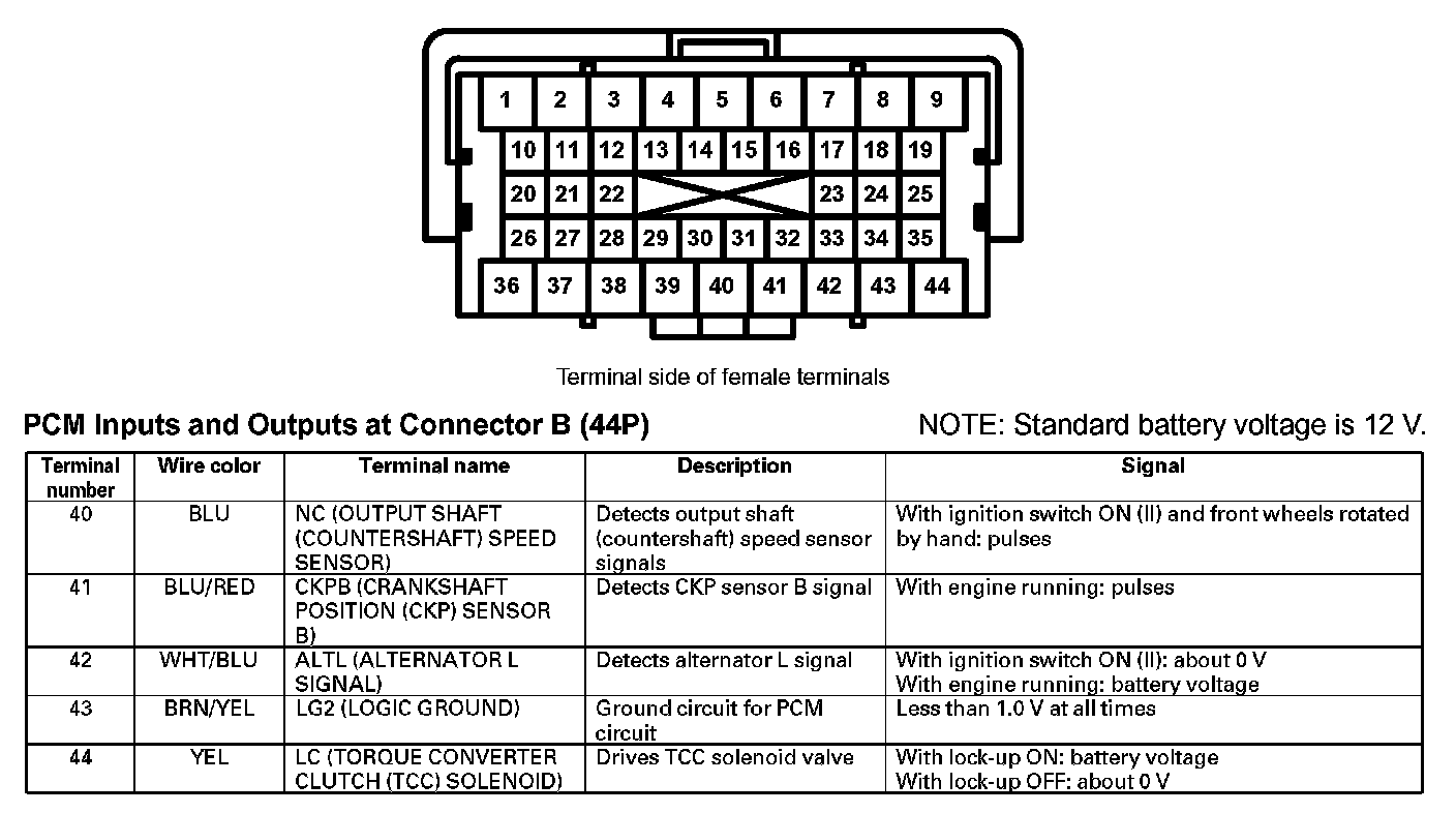 PCM Inputs And Outputs At Connector B (44P) (Part 1):