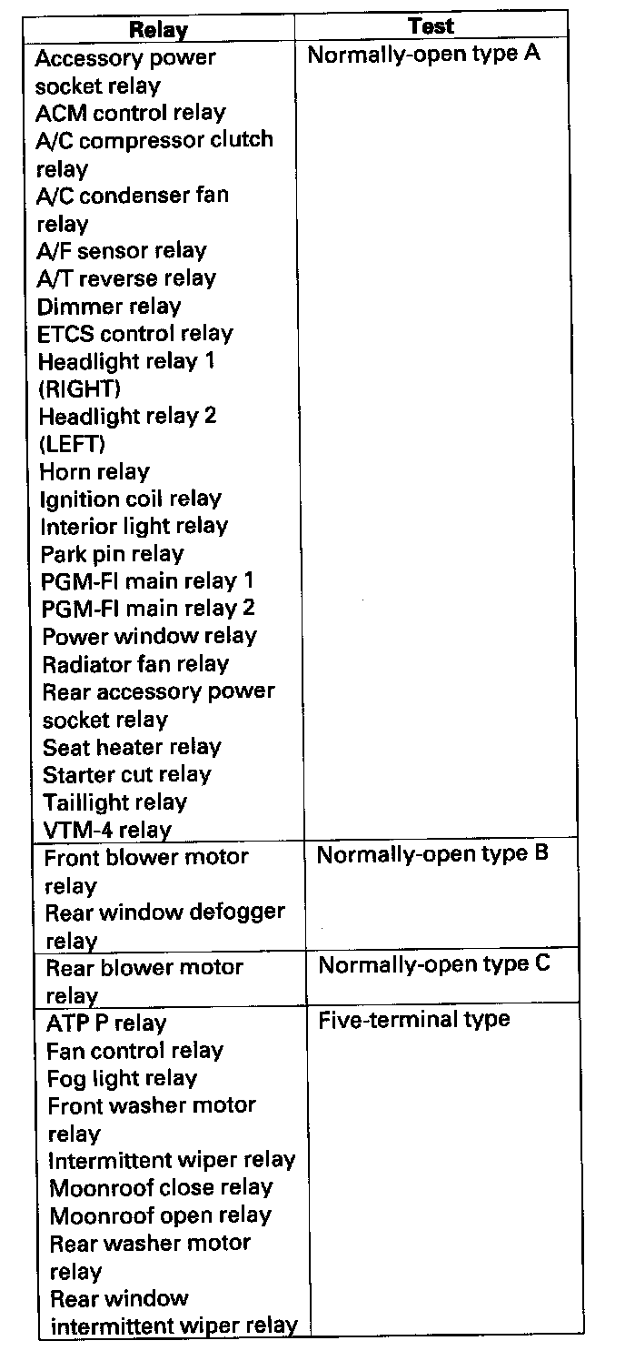 Power Relay TestUse this chart to identify the type of relay, then do the test listed for it.