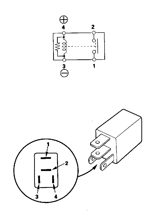 - There should be continuity between the No. 1 and No. 2 terminals when battery positive terminal is connected to the No. 4 terminal, and battery negative terminal is connected to the No. 3 terminal.