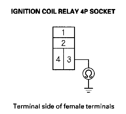 8. Check for continuity between ignition coil relay 4P socket terminal No. 3 and body ground.