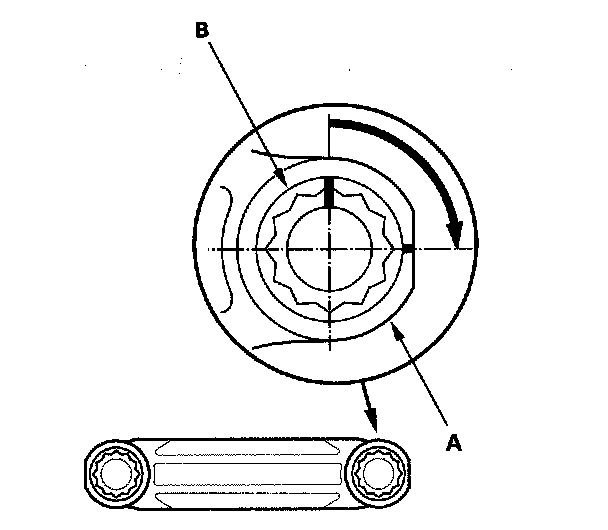 Mark the connecting rod (A) and bolt head (B) as shown.