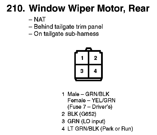 210. Window Wiper Motor, Rear: