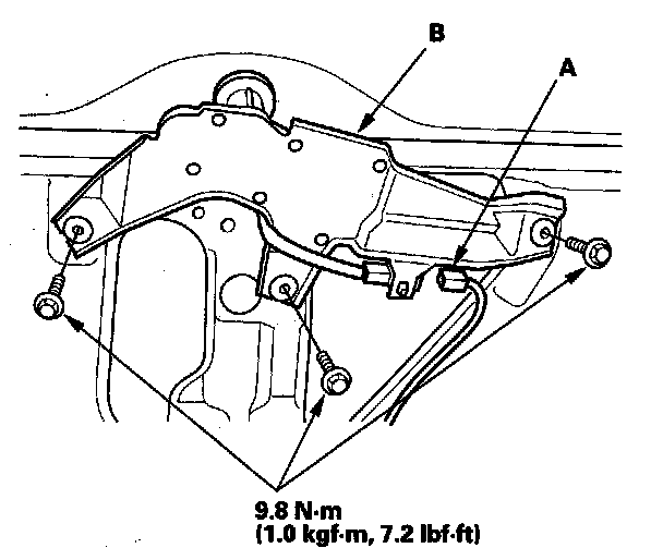 3. Disconnect the 4P connector (A) from the rear window wiper motor (B).