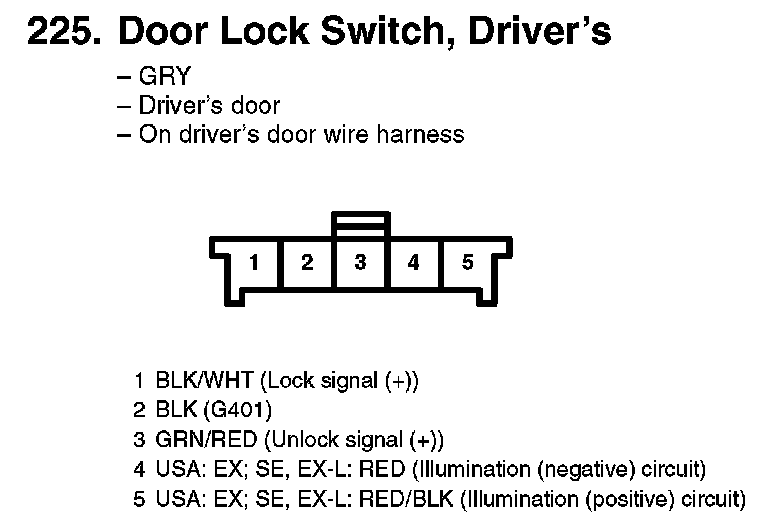 225. Door Lock Switch, Driver's: