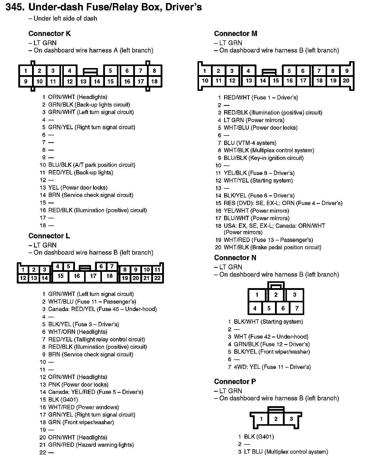 345. Under-dash Fuse/Relay Box, Driver's: