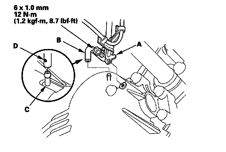 6. Install exhaust pipe A with the new self-locking nuts, its mount (B), and new gaskets (C) (D).