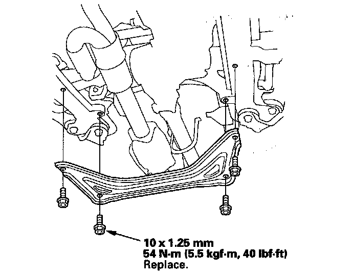 7. Install the front subframe stiffener with the new mounting bolts.