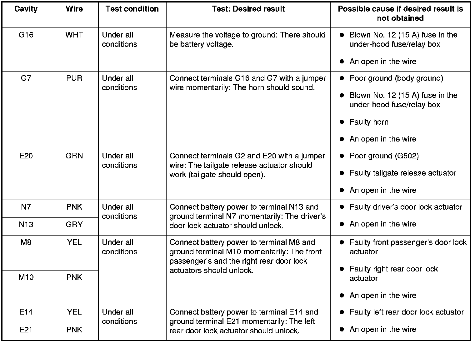 Keyless/Power Door Locks/Security System MICU Input Test