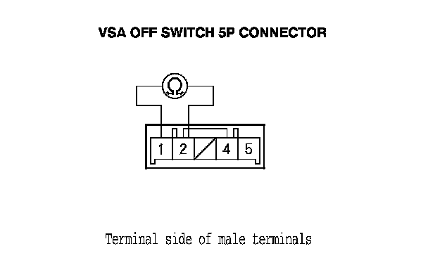 4. Check for continuity between the VSA OFF switch 5P connector terminals No. 1 and No. 2. There should be continuity when the switch is pressed, and no continuity when the switch is released.