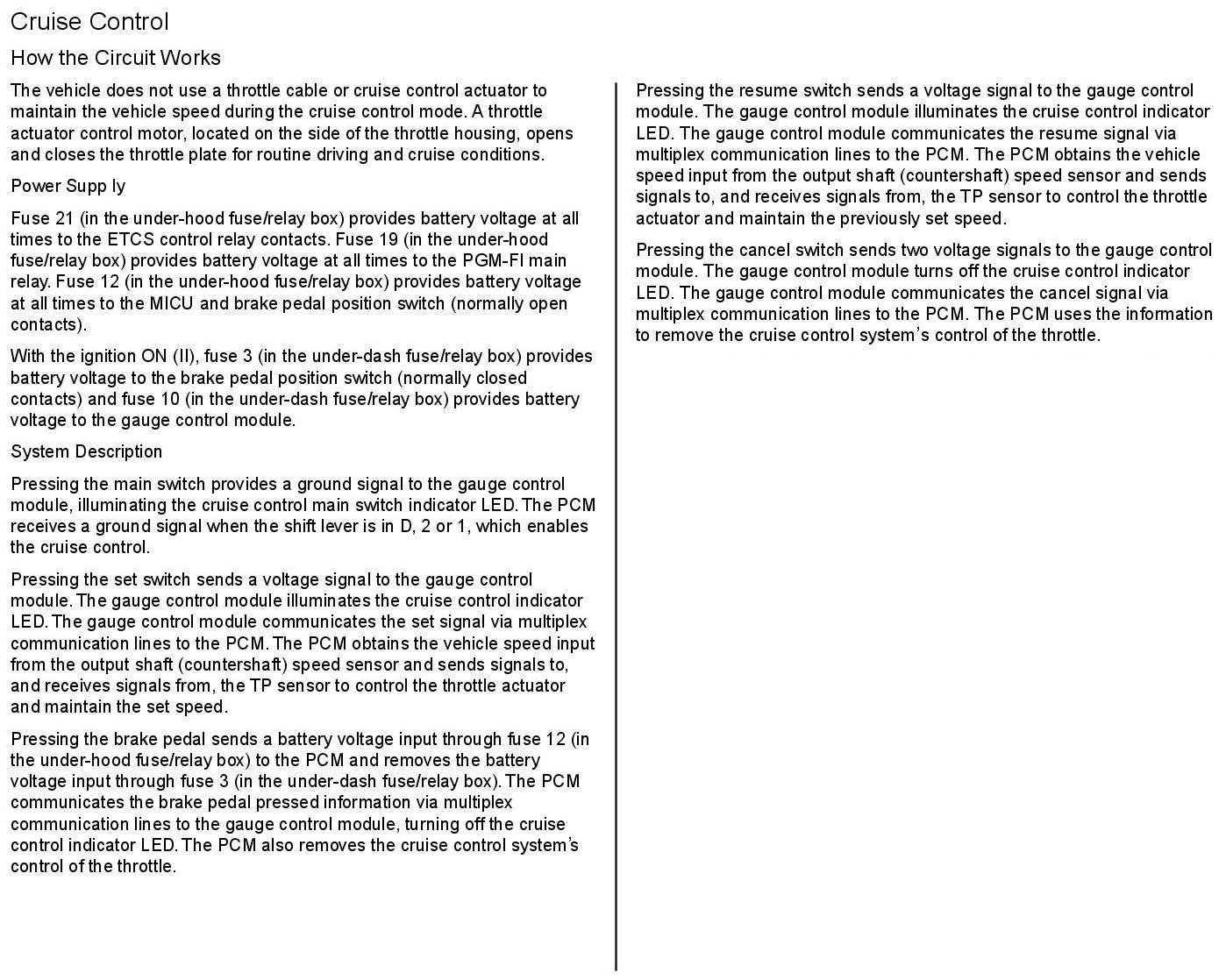 Cruise Control: Description and Operation