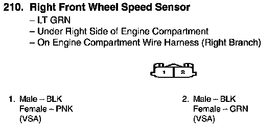 View 210 Right Front Wheel Speed Sensor Connector View