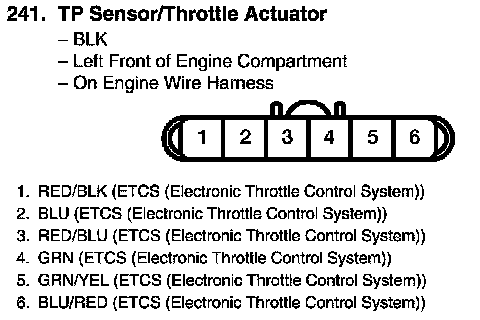 View 241 TP Sensor/Throttle Actuator Connector View