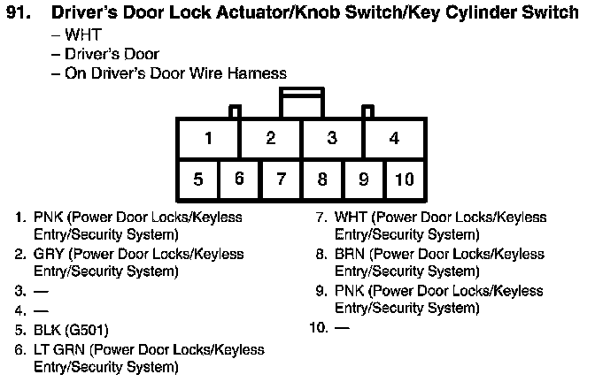 View 91 Driver's Door Lock Actuator/Knob Switch/Key Cylinder Switch Connector View