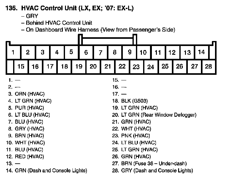 HVAC Control Unit Connector View