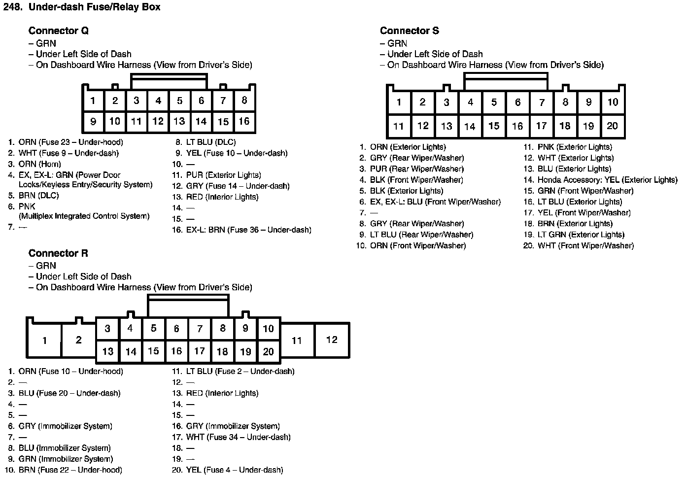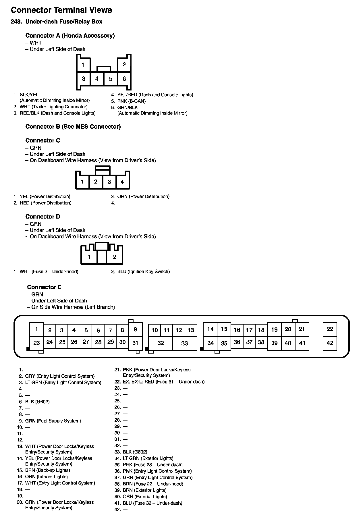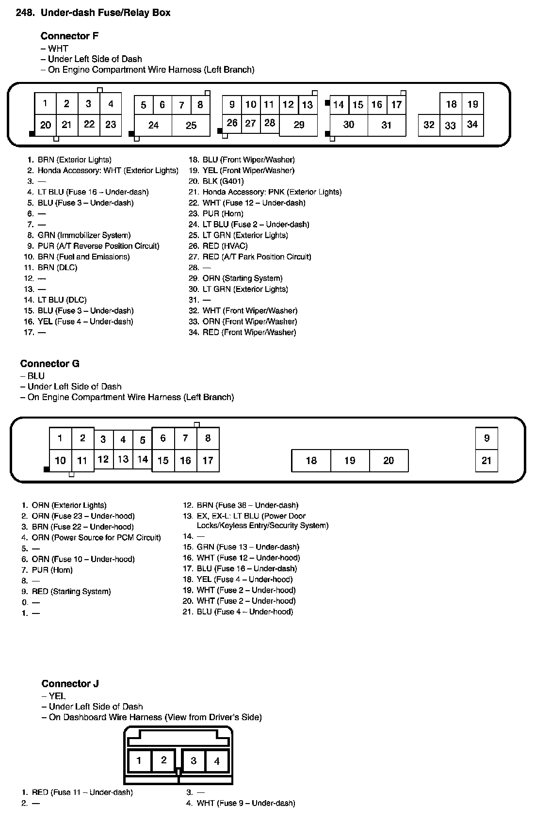 Under-dash Fuse/Relay Box Connector View