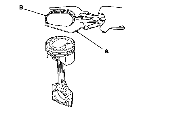 5. Measure the piston ring end-gap (B) with a feeler gauge: