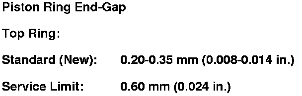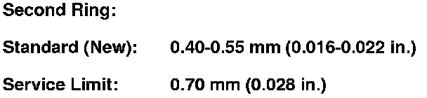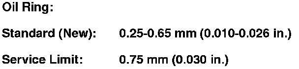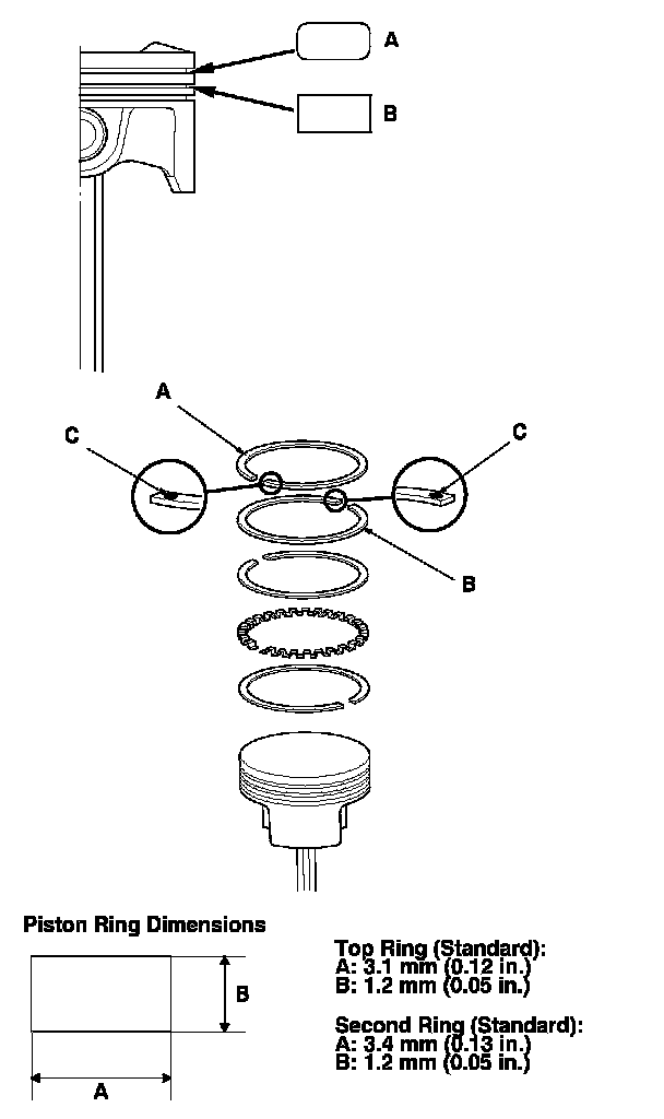 The top and 2nd ring grooves are 1.2 mm (0.05 in.) wide. The oil ring groove is 2.0 mm (0.08 in.) wide.