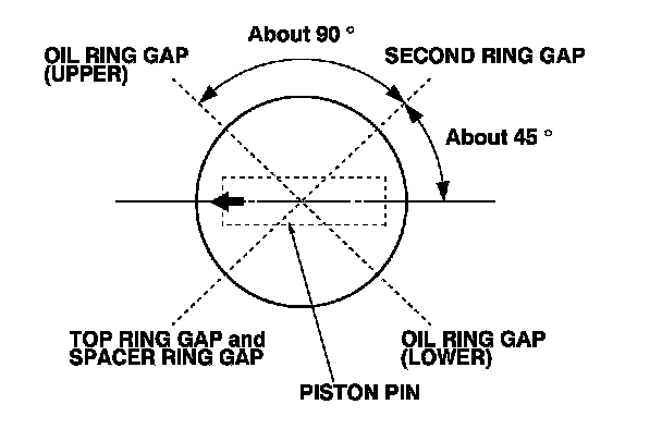 8. Position the ring end gaps as shown: