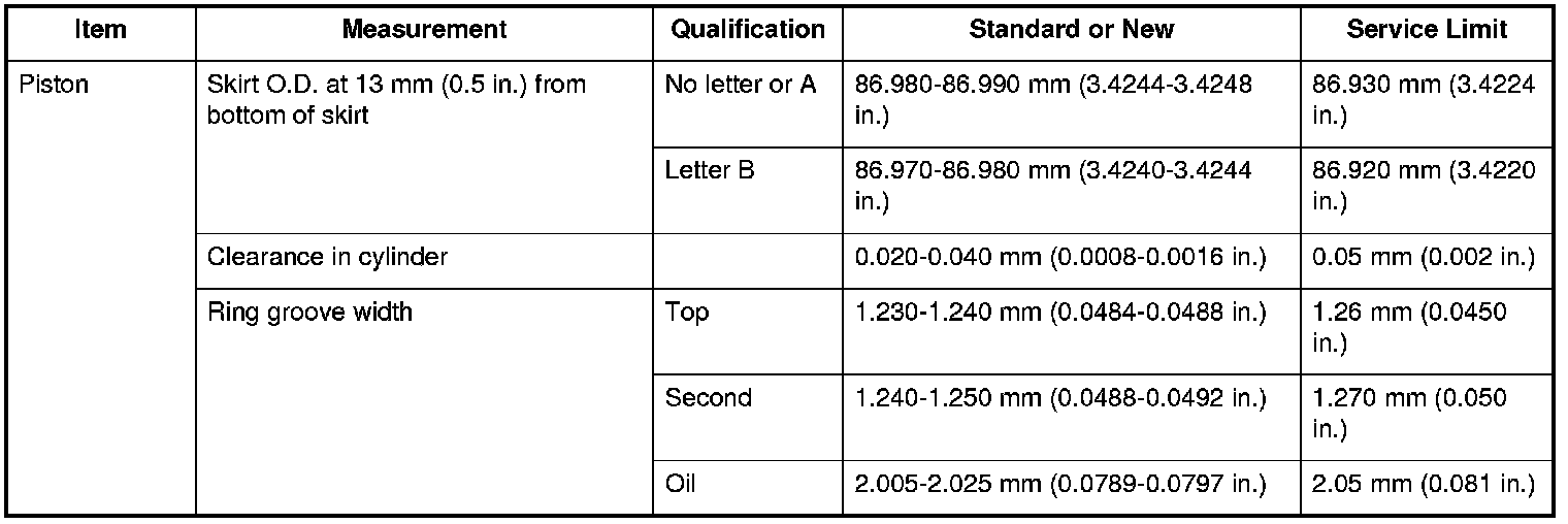 Piston Specifications