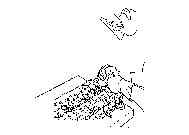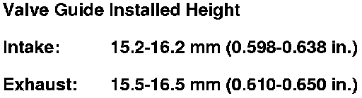14. Check the clearances with a valve. Valve Inspection Verify that a valve slides into the intake and exhaust valve guides without sticking.