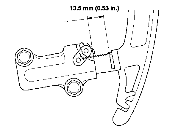 14. Measure the tensioner rod length between the tensioner body and bottom of the flat surface section on the tensioner rod. If the length is more than the service limit, replace the cam chain and the oil pump chain.