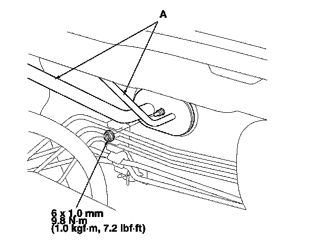 3. Remove the nut, then disconnect the A/C lines (A) from the evaporator core.