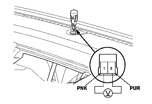3. Turn the ignition switch to ON (II). Measure the voltage between the terminals with the (+) probe on the No. 2 terminal and the (-) probe on the No. 1 terminal with the connector connected.