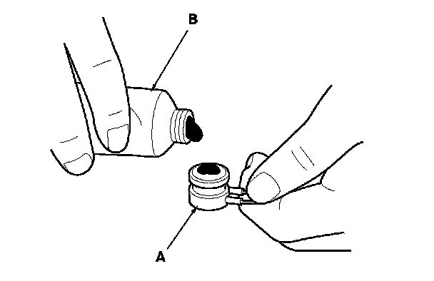 2. Replace the thermal protector (A) with a new one, and apply silicone grease (P/N 08798-9028) (B) to the bottom of the thermal protector.