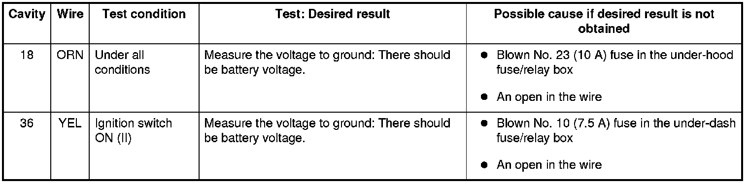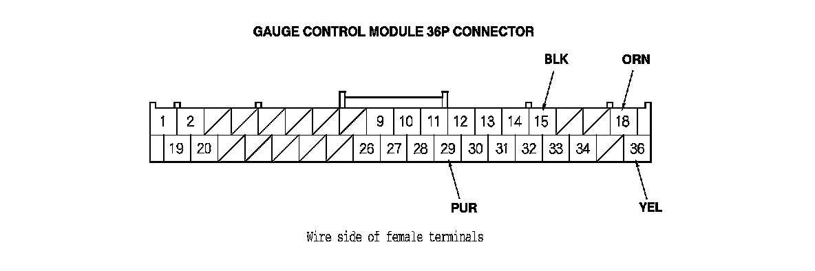 11. Reconnect the gauge control module 36P connector, turn the ignition switch to ON (II), and do these input tests at the following connector.