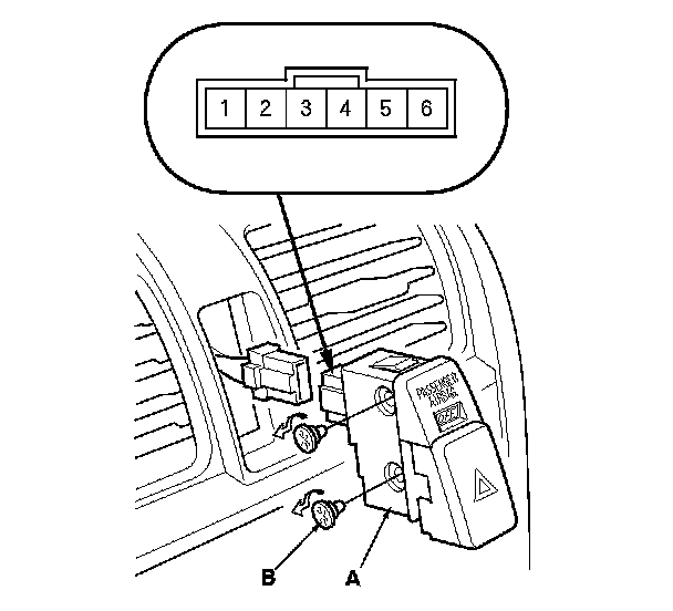 2. Remove the hazard warning switch (A), and disconnect the 6P connector from the switch.