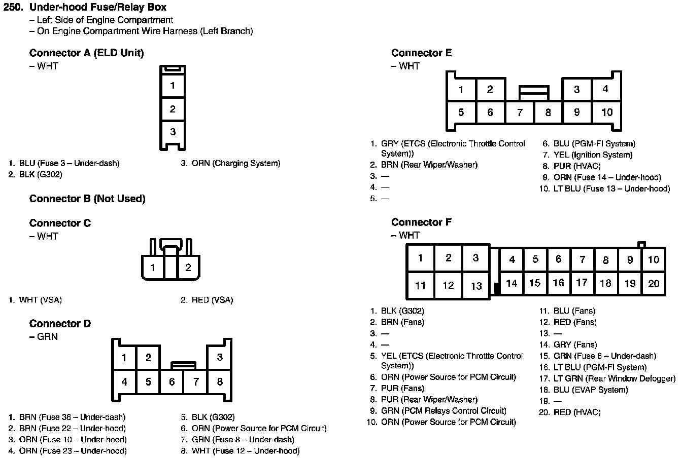 Under-hood Fuse/Relay Box Connector View