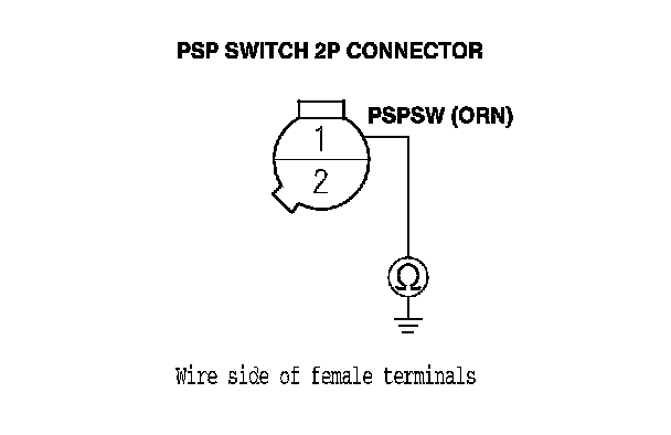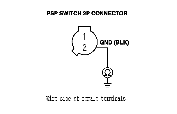 13. Check for continuity between PSP switch 2P connector terminal No. 1 and body ground.