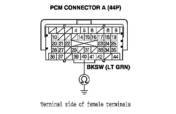 8. Check for continuity between PCM connector terminal A40 and body ground.