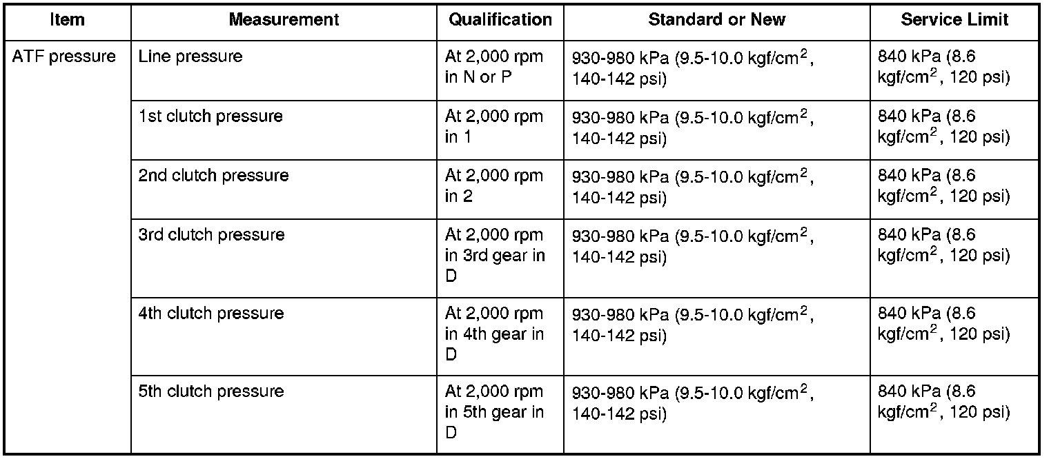 ATF pressure Specifications