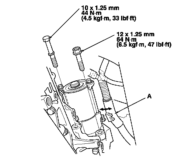 3. Install the starter, tighten the bolts, then install the harness clamp (A).