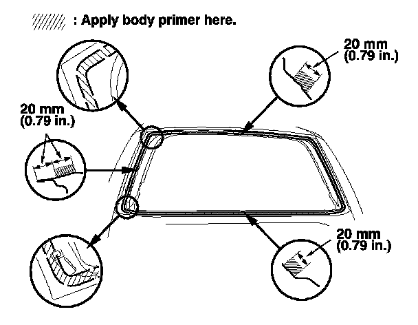 - Never touch the primed surfaces with your hands. If you do, the adhesive may not bond to the rear window properly, causing a leak after the rear window is installed.