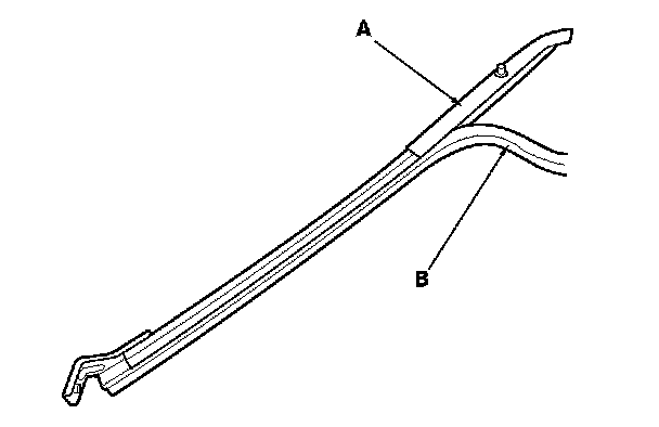 8. Remove the rear lower channel (A) from the glass run channel (B).