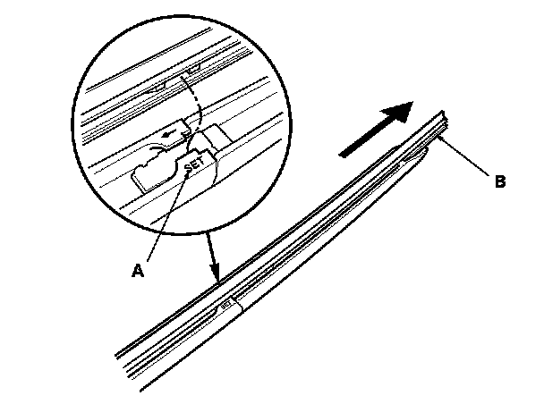 2. Turn the blade (A) to release it from the wiper arm (B).