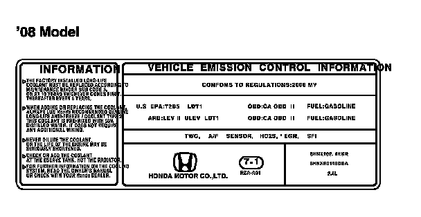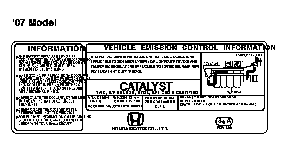 THIS VEHICLE CONFORMS TO U.S. EPA TIER 2 BIN 5 REGULATIONS APPLICABLE TO 2007 MODEL YEAR NEW LIGHT-DUTY TRUCKS AND CALIFORNIA REGULATIONS APPLICABLE TO 2007 MODEL YEAR NEW LEV II ULEV LIGHT-DUTY TRUCKS.