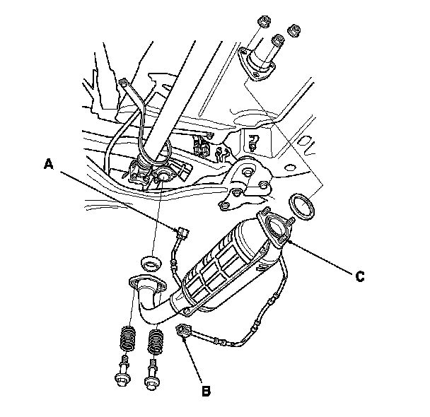23. Disconnect the air fuel ratio (A/F) sensor connector (A) and the secondary heated oxygen sensor (secondary HO2S) connector (B).