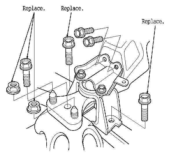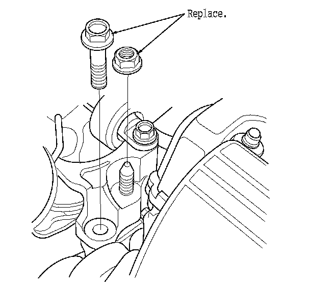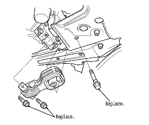 55. Remove the side engine mount bracket mounting bolt and nut.